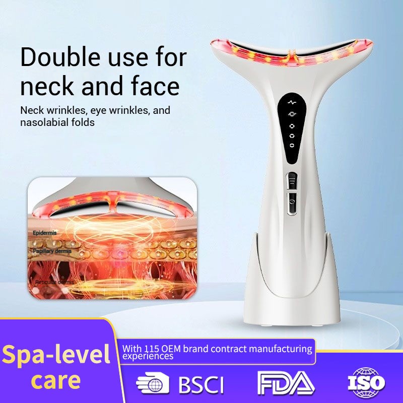 EMS微电流 EMS微电流,逐层刺激皮肤,对皮肤进行强效代谢循环,快速打开皮肤屏障,帮助有效养分渗透到肌底。 恒温热敷 按摩头温感及声波振动按摩,可促进血液循环,减缓表皮细胞衰老。淡化颈部皱纹,减少浮肿,恢复细胞弹性。 能量光波 LED灯对人体有不同的护理作用,能促进胶原蛋白的产生,起到淡化皱纹的功效。 方便快捷 小巧便携,随时随地使用